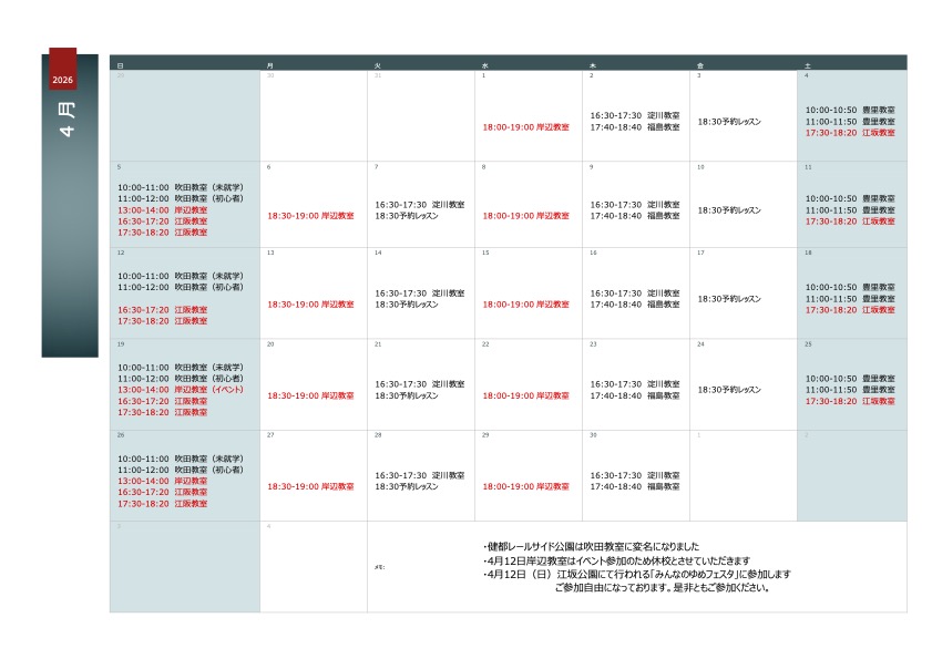 かけっこLABO ,2026年4月レッスンスケジュール