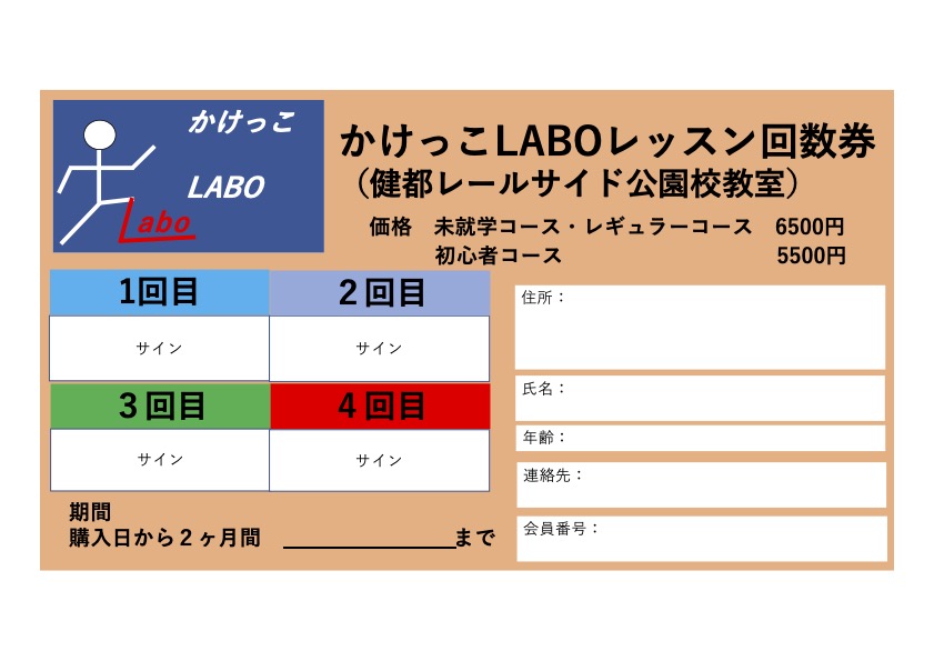 4月に始まった健都レールサイド公園教室にて回数券制を導入します。皆様のお役に立てれば幸いです。