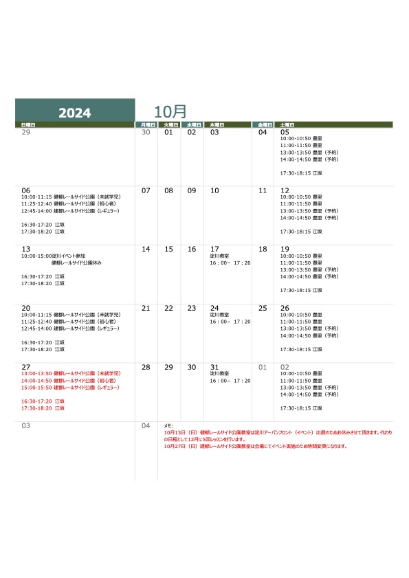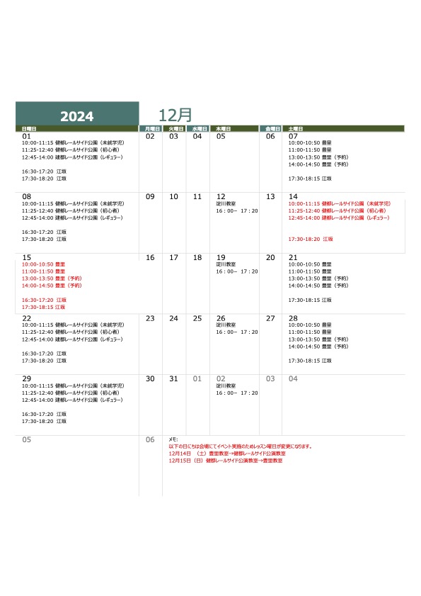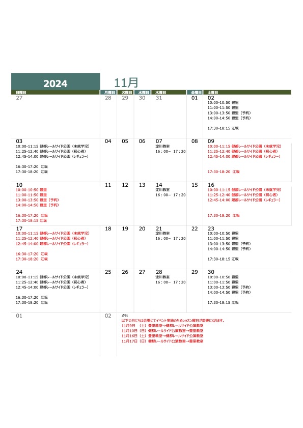 いつもお世話になっております。2024年度末までのレッスン予定表でございます。ご確認お願いします。