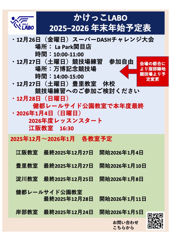 12月27日競技場練習ですが会場の予定により時間及び会場を変更します。